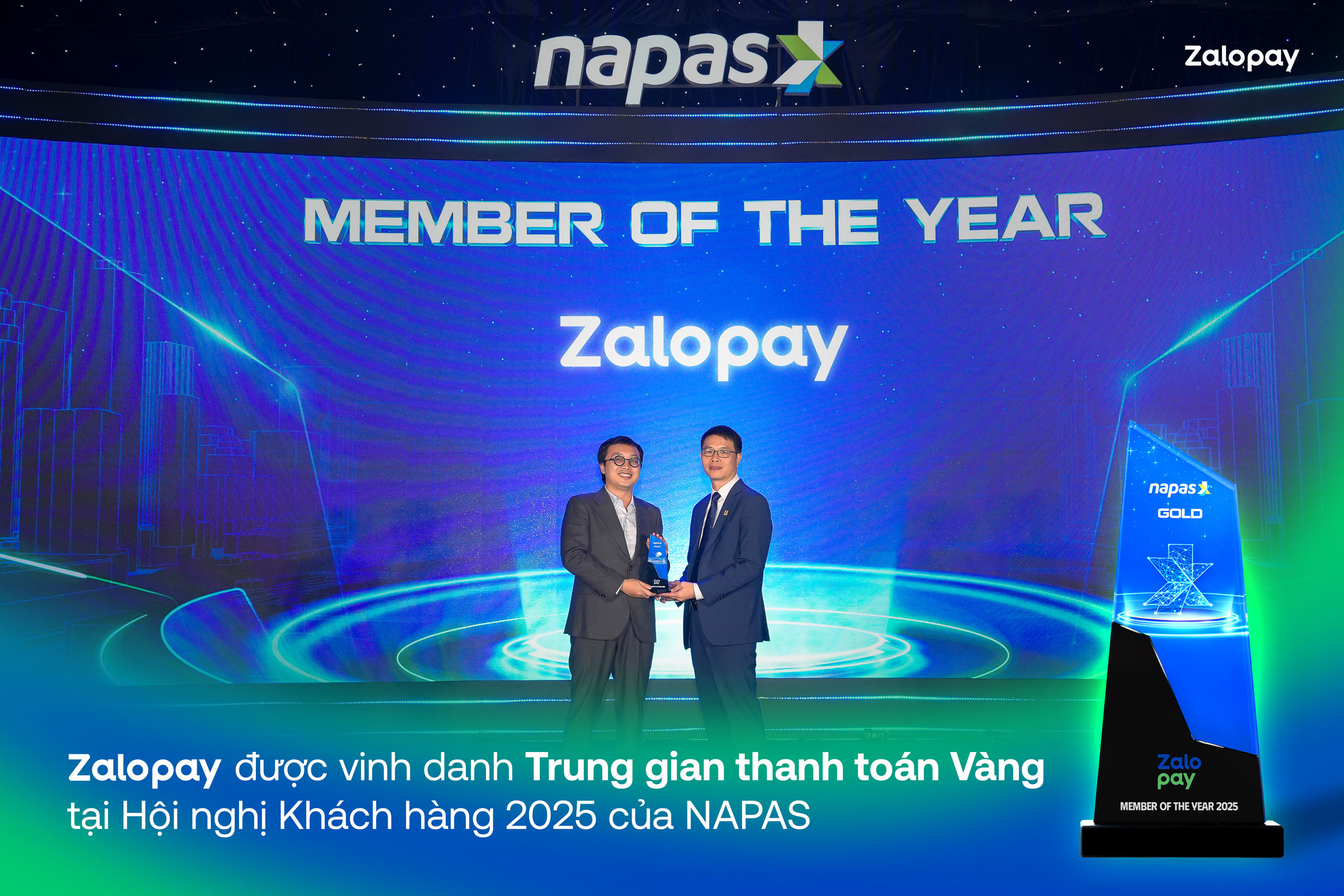 Ngày 19/9/2025, Zalopay đã được vinh danh tại hạng mục “Member of the Year 2025 (Hạng Vàng)” của NAPAS nhờ tổng giá trị giao dịch thuộc nhóm dẫn đầu mạng lưới thành viên.
