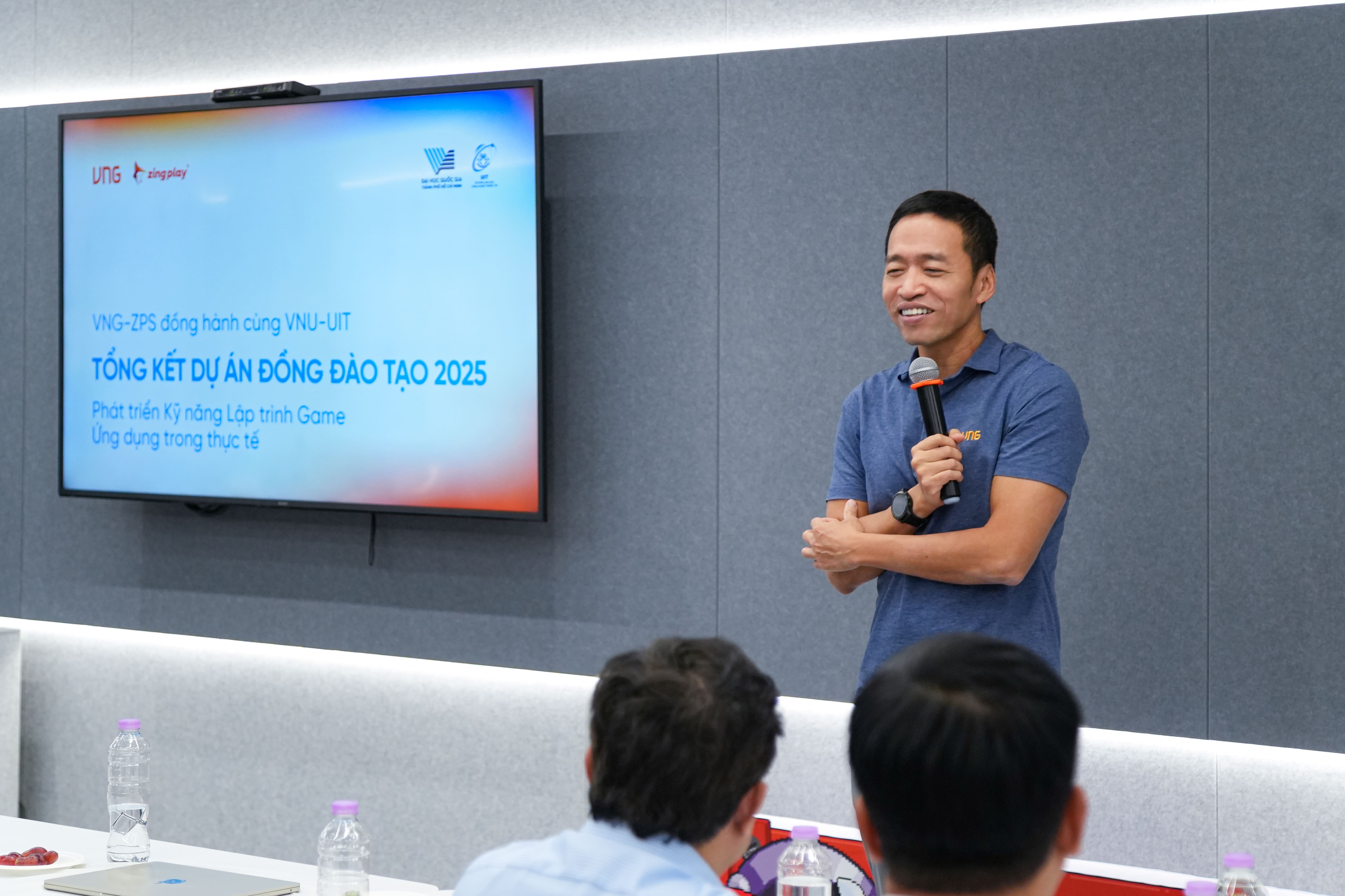 (TP. Hồ Chí Minh, ngày 21/01/2026) – Chiều nay, Trường Đại học Công nghệ Thông tin – Đại học Quốc gia TP.HCM (UIT) và Công ty Cổ phần Tập đoàn VNG (VNG Group) đã tổ chức Lễ tổng kết Dự án Đồng đào tạo 2025 của môn học Phát triển kỹ năng lập trình game ứng dụng trong thực tế (SE116) tại VNG Campus. Đây là mô hình đào tạo tiên phong theo hướng “đưa giảng đường vào doanh nghiệp”, khi các hoạt động học tập và thực hành được triển khai ngay tại VNG Campus, giúp sinh viên tiếp cận môi trường làm việc doanh nghiệp, quy trình triển khai dự án và cách thức phối hợp nhóm trong phát triển game.%20(1).jpg)