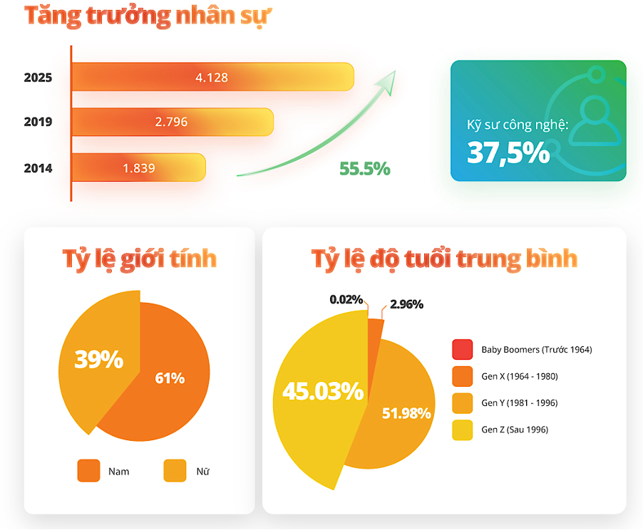 Tỉ lệ tăng trưởng và cơ cấu nhân sự của VNG